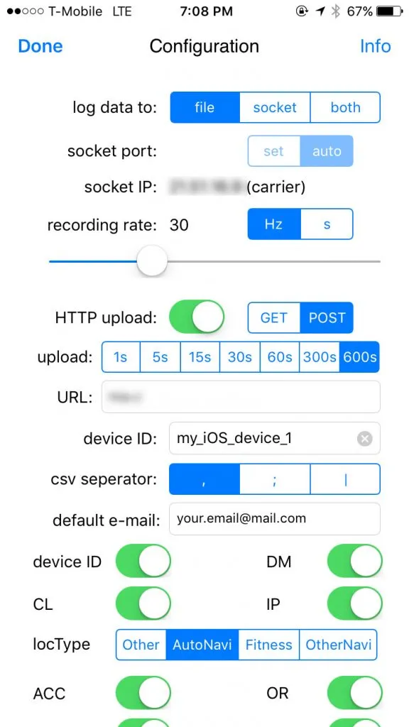 The first thing we need to define is how we collect data – and there’s an app for that. Bernd Thomas’ SensorLog for iOS collects all available metrics from your iOS device and is even able to send that data via TCP/IP sockets and HTTP, enabling our foundation for collecting data.