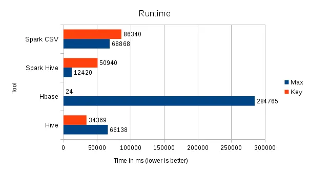 34.4s! In other words, 141x HBase’s runtime.