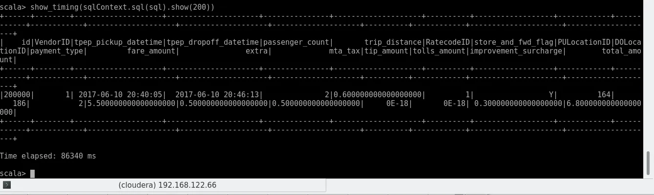 val df = sqlContext.read.format("com.databricks.spark.csv").option("header", "true").option("inferSchema", "false").schema(schema).load("hdfs:///user/cloudera/yellow_tripdata_2017-06_id.csv")